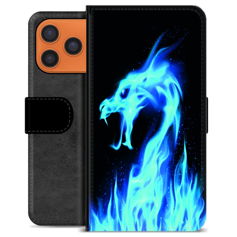 iPhone 17 Pro Max Premium Schutzhülle mit Geldbörse - Blauer Feuerdrache