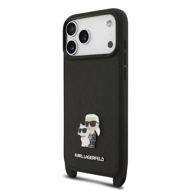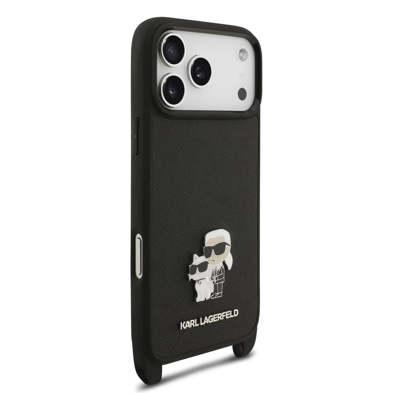 iPhone 17 Pro Karl Lagerfeld Saffiano Crossbody Metal Karl & Choupette Hülle - Schwarz