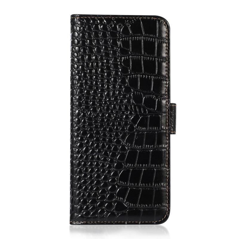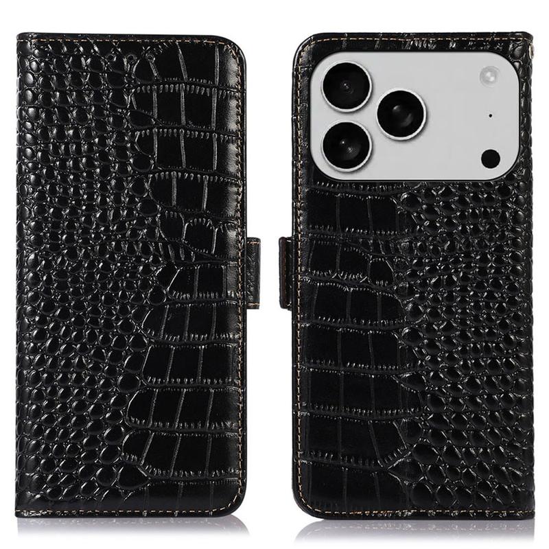 iPhone 17 Pro Max Crocodile Serie Lederhülle mit Geldbörse mit RFID - Schwarz