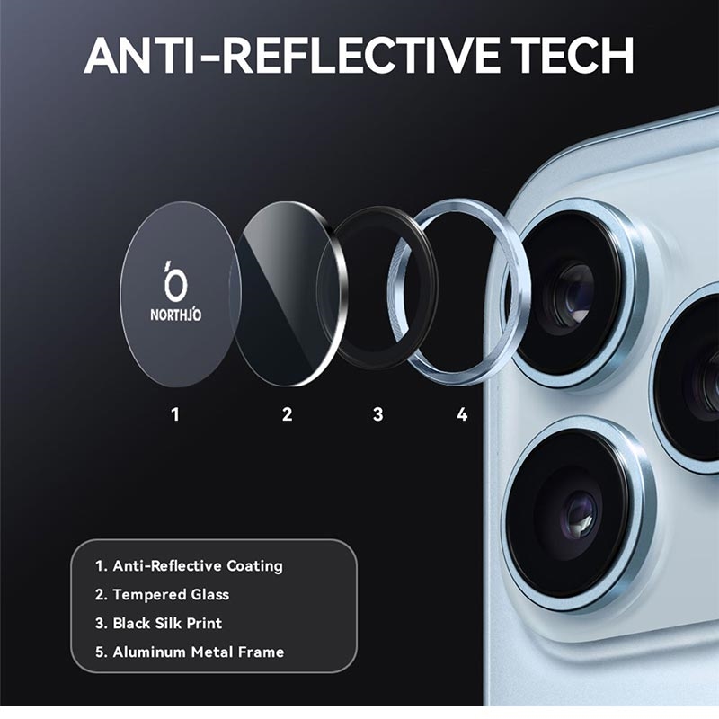 Rüsten Sie Ihr iPhone 17 Pro, iPhone 17 Pro Max mit dem Northjo Kameraobjektivschutz auf. Mit einem CD-Adern-Aluminiumring verleiht er Ihrem iPhone 17 Pro, iPhone 17 Pro Max einen eleganten, modernen Touch und bietet gleichzeitig einen robusten Schutz. Das 9H gehärtete Glas schützt vor Kratzern, Stößen und Staub und sorgt dafür, dass Ihr Kameraobjektiv kristallklar bleibt. Mit der einfachen, werkzeuglosen Installation können Sie die Haltbarkeit und Ästhetik Ihres iPhone 17 Pro, iPhone 17 Pro Max in Sekundenschnelle verbessern.
