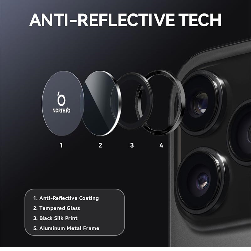 Rüsten Sie Ihr iPhone 17 Pro, iPhone 17 Pro Max mit dem Northjo Kameraobjektivschutz auf. Mit einem CD-Adern-Aluminiumring verleiht er Ihrem iPhone 17 Pro, iPhone 17 Pro Max einen eleganten, modernen Touch und bietet gleichzeitig einen robusten Schutz. Das 9H gehärtete Glas schützt vor Kratzern, Stößen und Staub und sorgt dafür, dass Ihr Kameraobjektiv kristallklar bleibt. Mit der einfachen, werkzeuglosen Installation können Sie die Haltbarkeit und Ästhetik Ihres iPhone 17 Pro, iPhone 17 Pro Max in Sekundenschnelle verbessern.