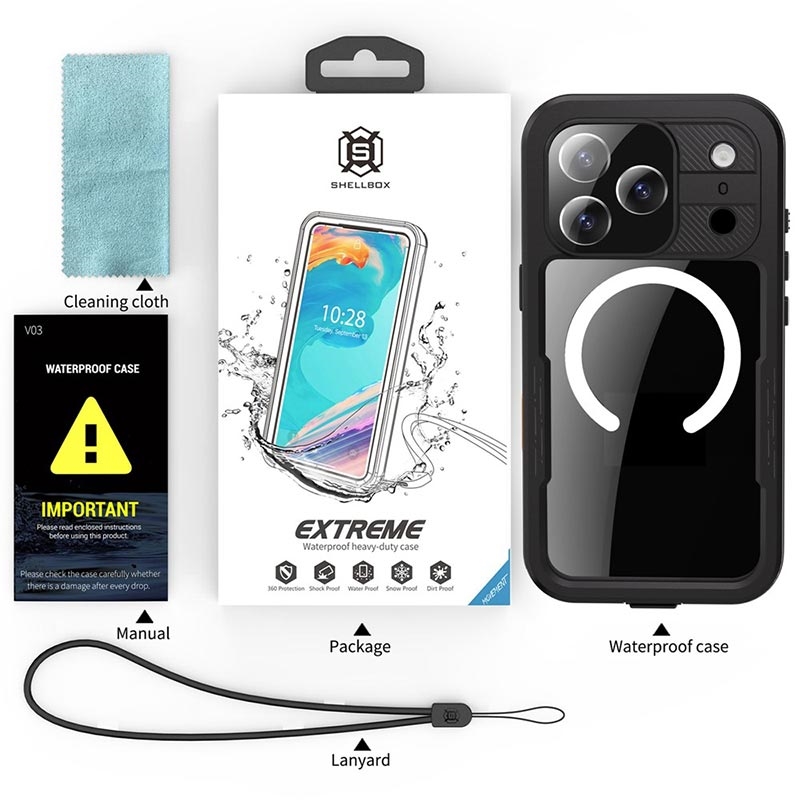• Shellbox M Serie IP68 Wasserdichtes Hülle für iPhone 17 Pro Max - Tauchhülle mit MagSafe Kompatibilität