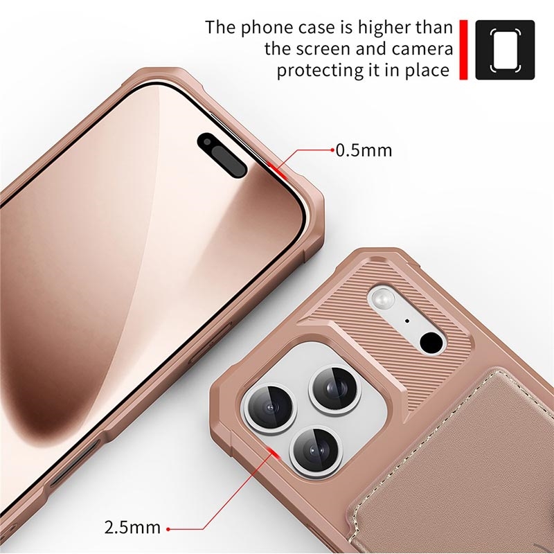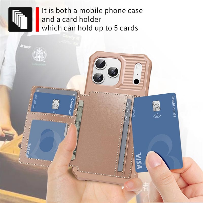 - Die Brieftaschenhülle für das iPhone 17 Pro Max verfügt über einen sicheren Druckknopfverschluss, ein Brieftaschendesign und mehrere Kartenfächer mit einer Geldtasche