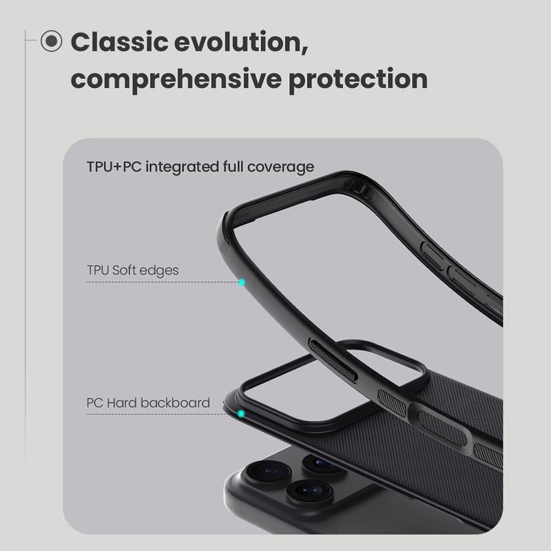 Nillkin hat die neue, leistungsstärkere Pro-Version der Super Frosted Shield Hülle für Ihr wertvolles iPhone 17 Pro entwickelt. Ultimativer Fallschutz, dank Dual-Layer-Design - PC-Rückseite mit TPU-Rahmen.