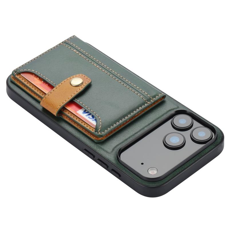 iPhone 17 Pro Retro Style Hülle mit Geldbörse - Grün