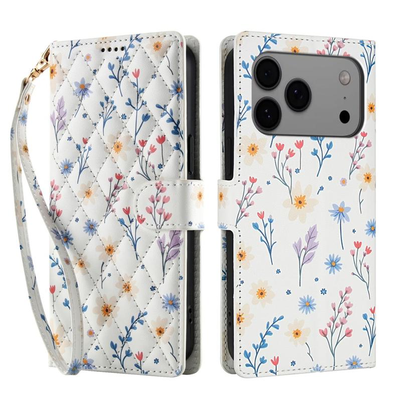 • Rhombisches Blumen Wallet Hülle für iPhone 17 Pro - mit Riemen und Kartenfächern