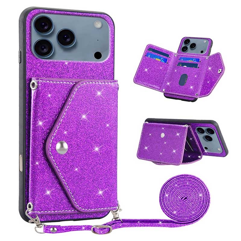 Die hochwertige Hülle aus der Stardust-Serie ist die richtige Wahl, um Ihr iPhone 17 Pro vor möglichen Schäden zu schützen. Es hat einen Kartenhalter auf der Rückseite mit einem Druckknopf, der großartig ist, um Ihre wichtigen Karten aufzubewahren und sicher aufzubewahren. Eine glänzende Glitzeroberfläche verleiht Ihrem Telefon einen Hauch von Glamour. Darüber hinaus wird die Hülle mit einem 150cm langen Schultergurt geliefert, mit dem Sie Ihr iPhone 17 Pro überall hin mitnehmen können.