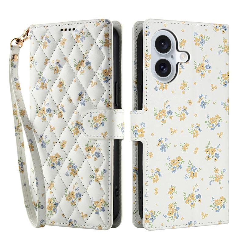 Rhombisches Blumen Wallet Hülle für iPhone 17 - mit Riemen und Kartenfächern