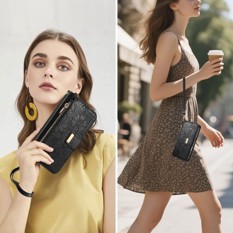 Brieftaschentaschen erfreuen sich zunehmender Beliebtheit, da sie eine umweltfreundliche Alternative zum Tragen einer Brieftasche und einer iPhone 17 Tasche darstellen. Das florale Prägeverfahren wertet nicht nur das Aussehen auf, sondern stärkt auch die Polyurethan-Oberfläche und macht sie widerstandsfähiger gegen Kratzer.
