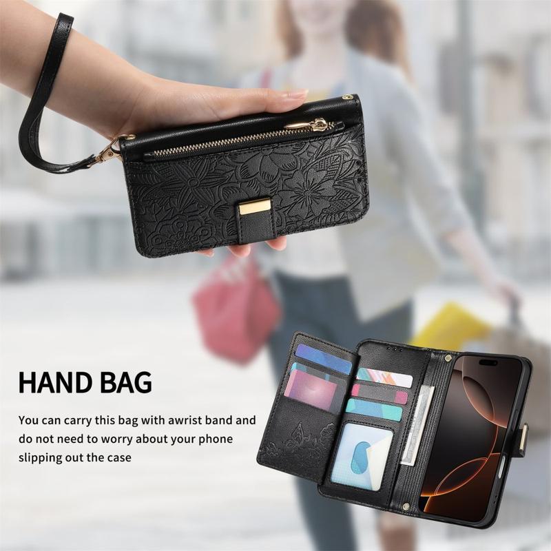 Im Gegensatz zu gewöhnlichen iPhone 17-Hüllen vereint diese Hülle Schutz, Organisation und Eleganz in einem. Der florale Aufdruck verleiht ihr einen stilvollen Touch, während die Reißverschlusstasche und die Handschlaufe unübertroffenen Komfort im Alltag und auf Reisen bieten.