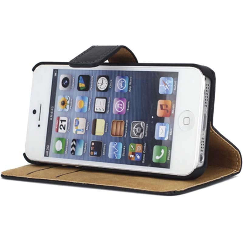 iPhone 5 / 5S / SE Geldbörse Leder Tasche - Schwarz