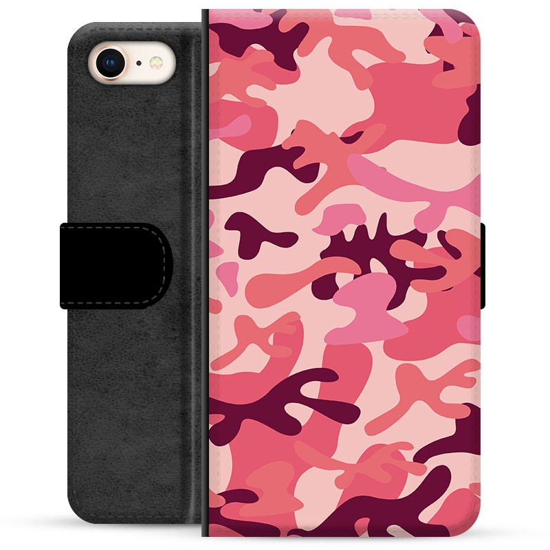 iPhone 7/8/SE (2020)/SE (2022) Premium Schutzhülle mit Geldbörse - Rosa Tarnung