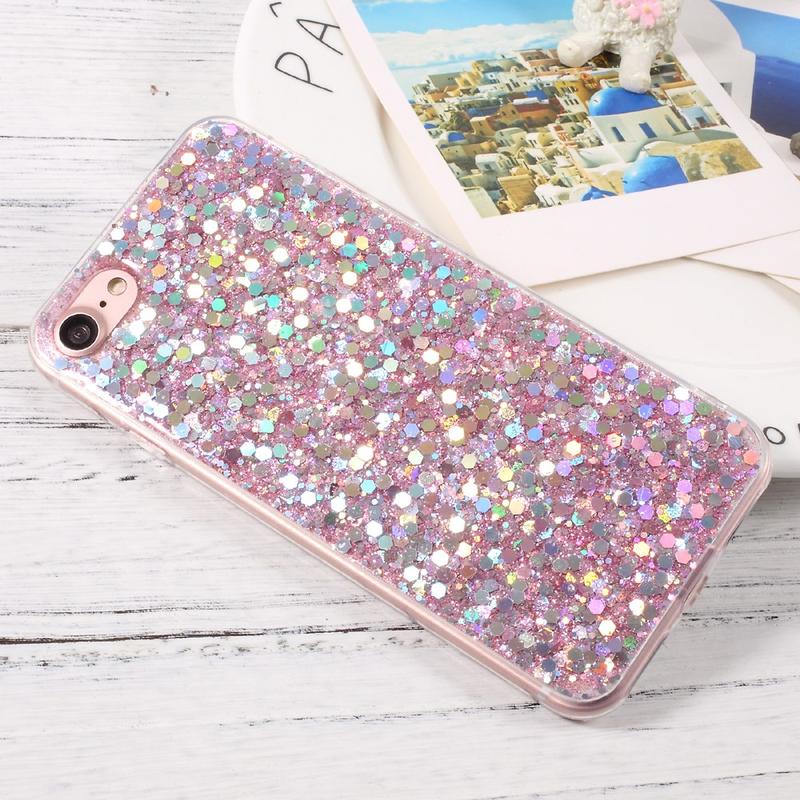 iPhone 7/8/SE (2020)/SE (2022) Glitter Flakes TPU Hülle - Rosa
