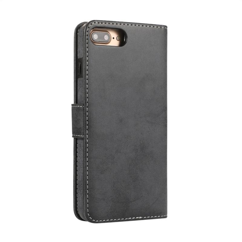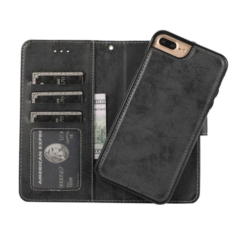 iPhone 7 Plus/8 Plus Vintage 2-in-1-Geldbörsenhülle mit abnehmbarer Abdeckung - Schwarz