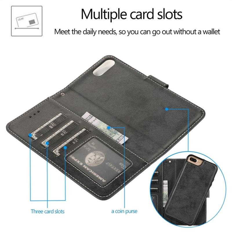 • Vintage 2-in-1-Geldbörsenhülle mit abnehmbarer Magnetabdeckung für das iPhone 7 Plus, iPhone 8 Plus