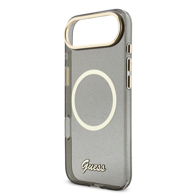 Guess IML Glitter Script Armband MagSafe Hülle für iPhone Air - Glitzernde Rückseite mit Handgelenkband, PC+TPU-Schutz, MagSafe-kompatibel