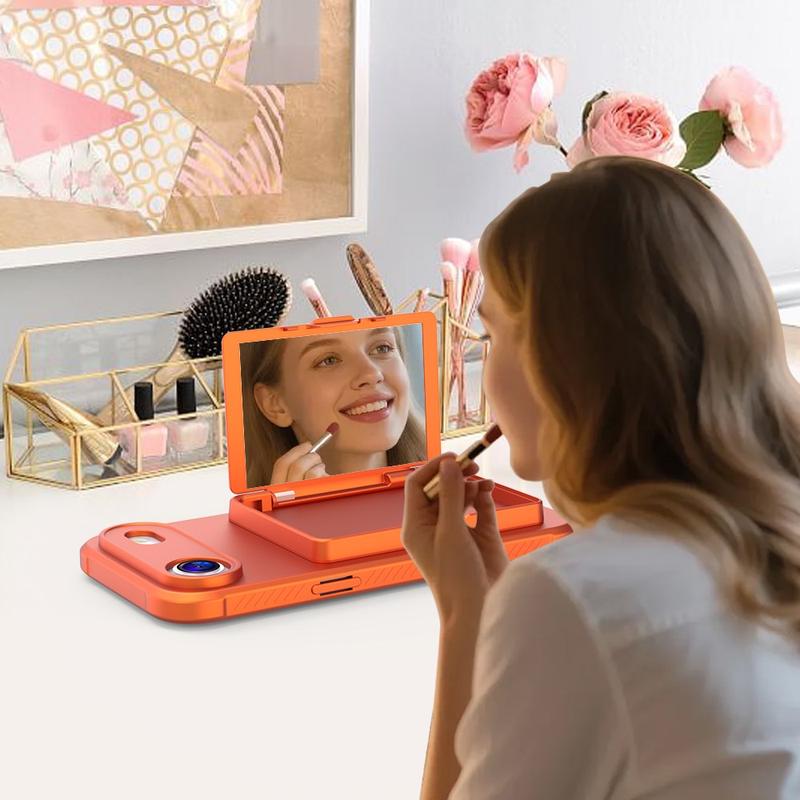 iPhone Air Hybrid Hülle mit Spiegel und Kartenhalter - Orange