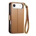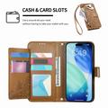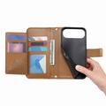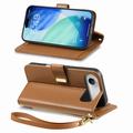 iPhone Air Wallet Hülle mit Blumen und Blattmuster mit Reißverschlusstasche & Handgelenkband - Braun