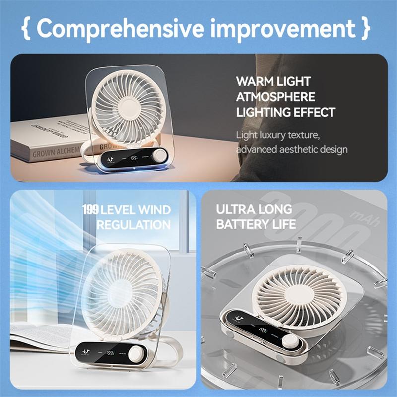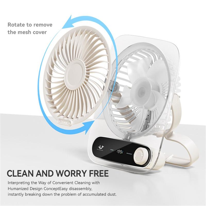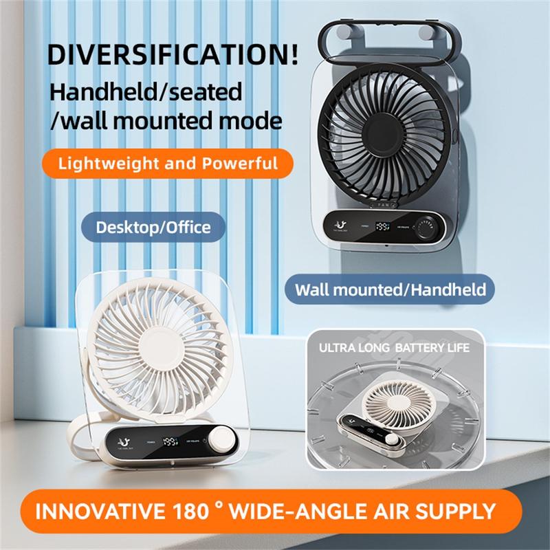 • JF136 Weitwinkliger tragbarer Tisch- und Hängeventilator / 199-Gang 3000mAh USB-C wiederaufladbare Kühlbox