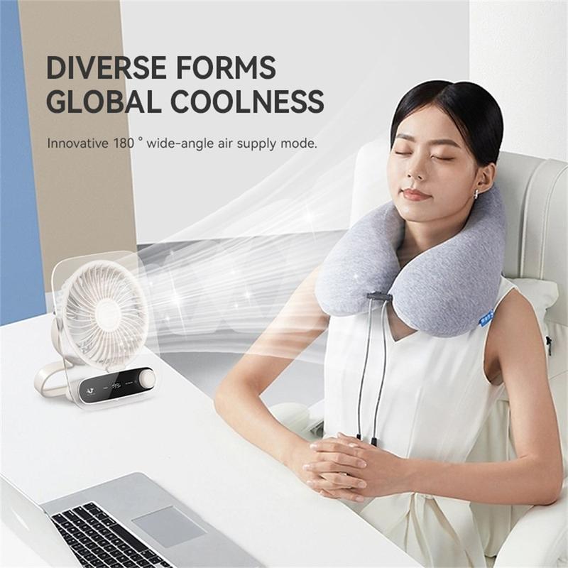 Mit dem ultra-vielseitigen JF136 können Sie überall die Hitze bekämpfen. Sein Fünf-Blatt-Rotor sorgt für einen starken, gleichmäßigen Luftstrom über einen vollen 180°-Bogen, während sein schlanker Rahmen aus halbtransparentem PC auf jedem Schreibtisch oder Regal wie ein Eisblock aussieht. Hängen Sie ihn an ein Bett, hängen Sie ihn an ein Küchenregal oder stellen Sie ihn aufrecht hin - 3000 mAh Akkuleistung und flüsterleiser Betrieb halten Sie bis zu 10 Stunden lang auf der niedrigsten Stufe kühl. Das abnehmbare Gitter ermöglicht eine schnelle staubfreie Wartung, und dank USB-C-Schnellladung sind Sie immer bereit für die nächste Hitzewelle.