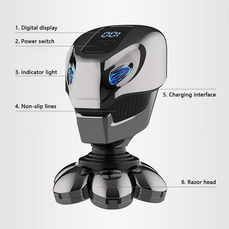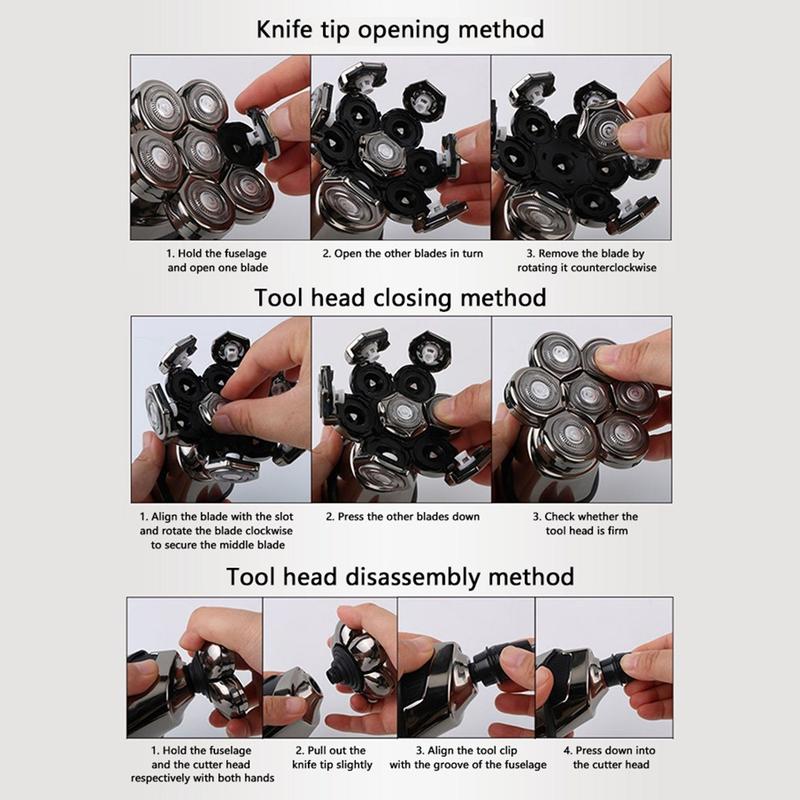 - Präzise Kopfrasur: Verwenden Sie den 7D-Schwingscherkopf für eine saubere, glatte Kopfhaut, die sich jeder Kontur anpasst.