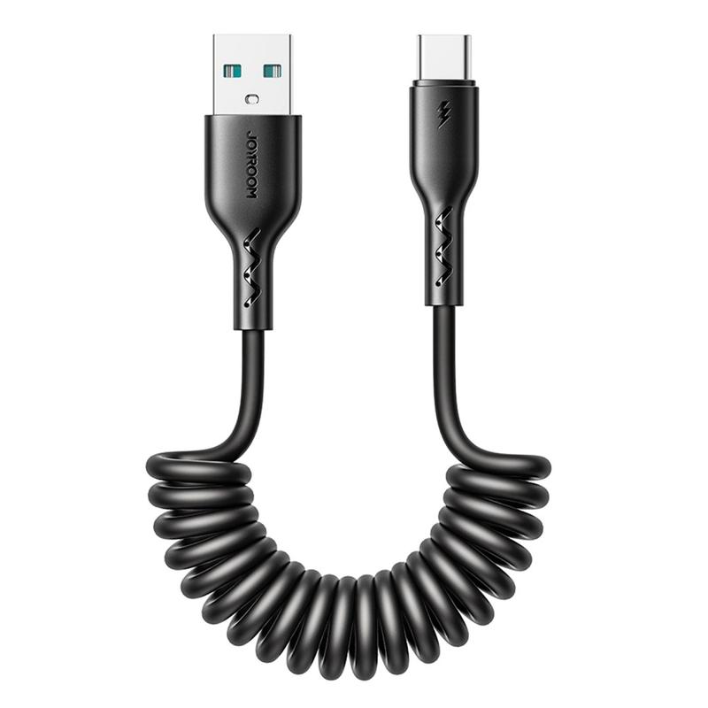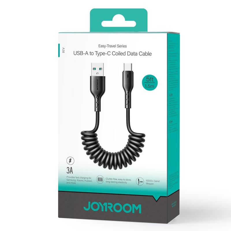 Joyroom 3A Easy-Travel Spiralkabel Schnellladung USB-A zu USB-C Kabel - 1.5m - Schwarz