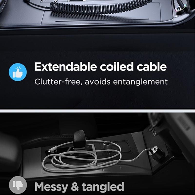 - Autofahrten: Die Spule bleibt ordentlich um den Schalthebel herum und reicht dennoch weit genug für die Passagiere auf dem Rücksitz.