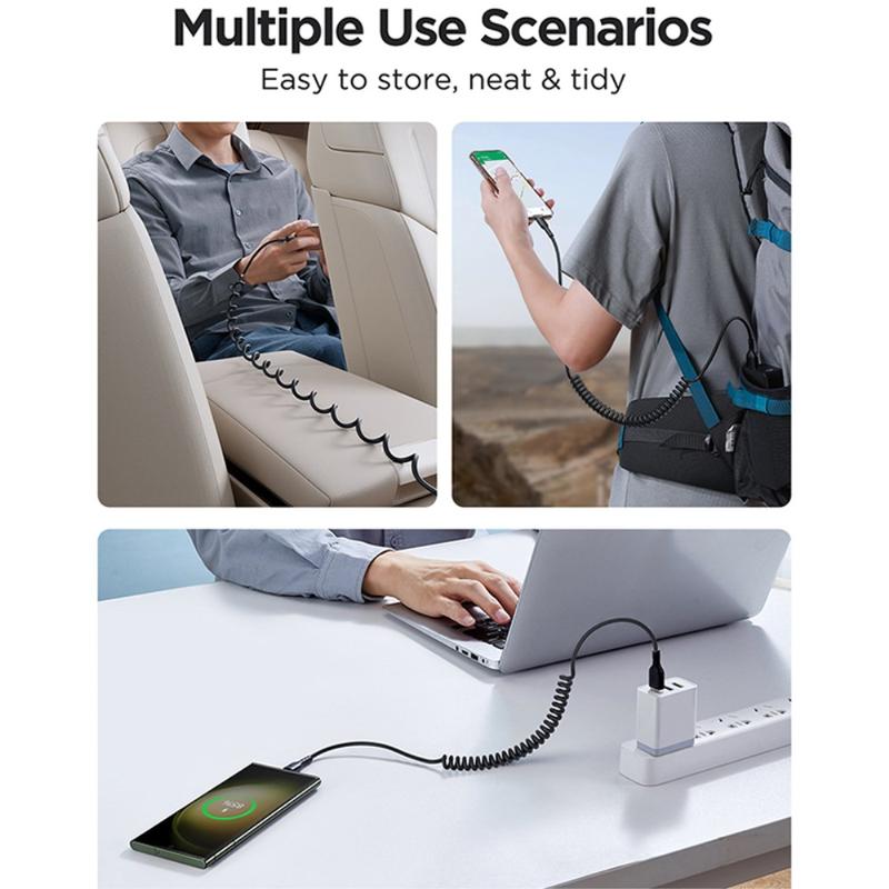Haben Sie genug von verhedderten Kabeln auf dem Beifahrersitz oder im Rucksack? Das Joyroom Easy-Travel Kabel lässt sich auf 1.5m dehnen, wenn Sie es brauchen, und rollt sich dann zu einer ordentlichen Spirale auf, die direkt in Ihre Tasche passt. Ein 3A-Ausgang, ein intelligenter Sicherheitschip und eine Datenübertragungsrate von 480 Mbit/s sorgen dafür, dass Sie Ihr Handy oder Ihre Powerbank schnell aufladen und gleichzeitig Wiedergabelisten oder Karten synchronisieren können.