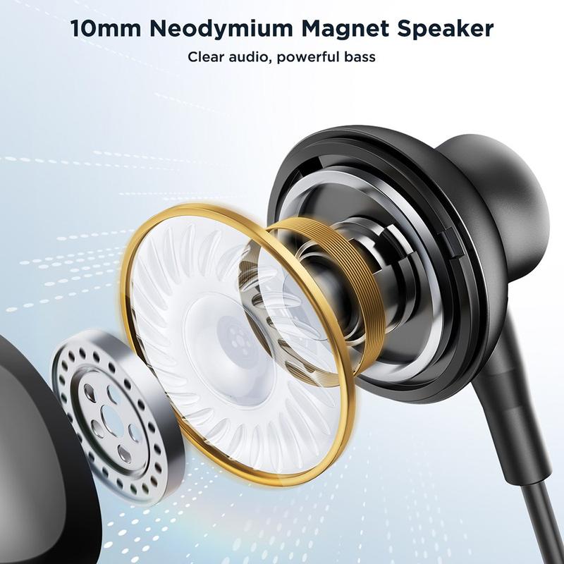 Die Joyroom JR-EC07 Metal Half-In-Ear Wired Earphones mit Type-C-Anschluss vereinen Stil, Komfort und Funktionalität und sind damit das perfekte Accessoire für alle, die sich einen zuverlässigen, hochwertigen Klang und ein elegantes Design wünschen.