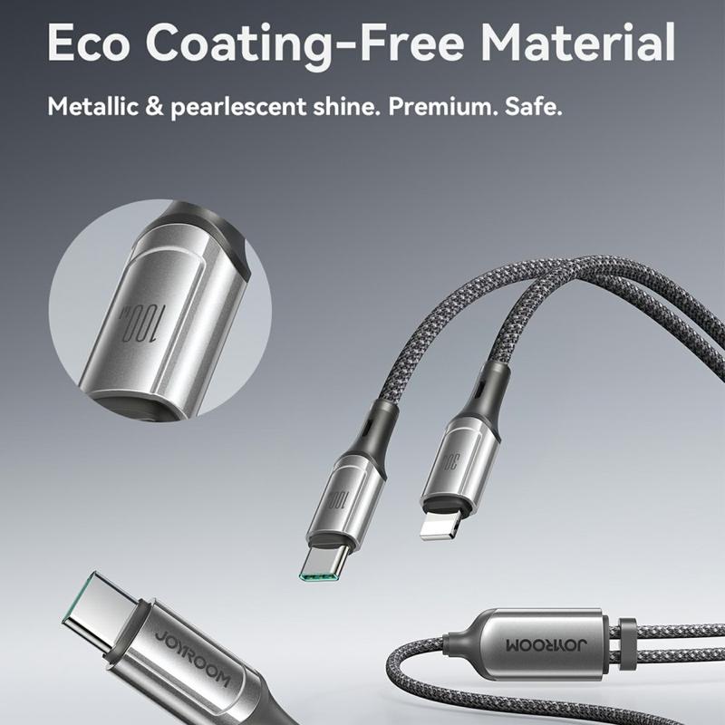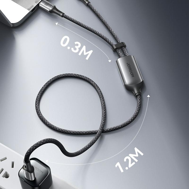 Joyroom S-A57 100W 2-in-1-Ladekabel - USB-C zu USB-C + Lightning Dual Connector, 480 Mbps Datensynchronisation, Nylon geflochten