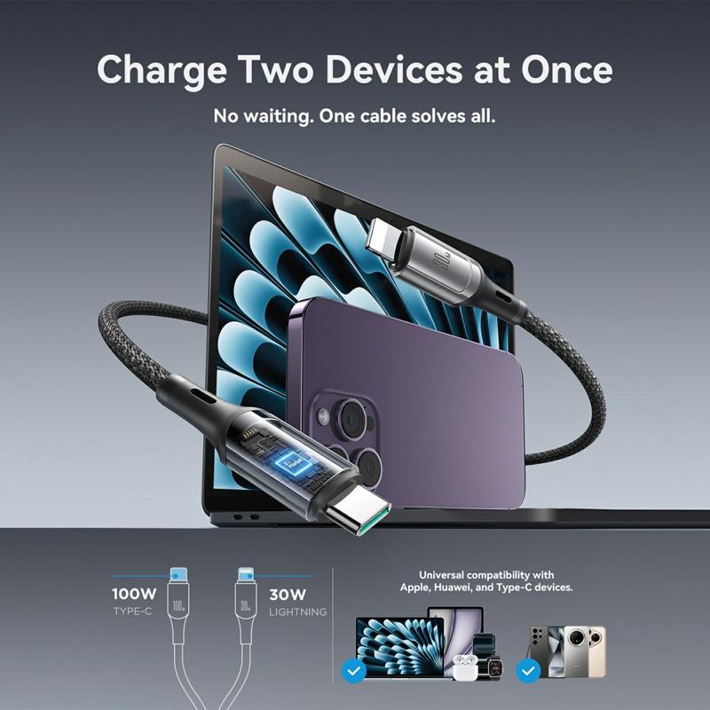- Duales Anschlussdesign: USB-C auf USB-C + Lightning für breitere Gerätekompatibilität