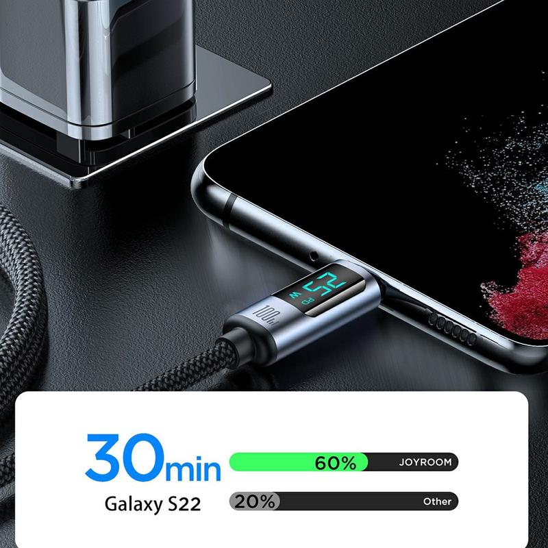 Joyroom S-CC100A16 Prisma Digitalanzeige USB-C Kabel - 100W - Schwarz