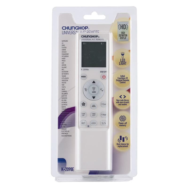 Mit der CHUNGHOP K-2098E Universal-Fernbedienung für Klimaanlagen können Sie Ihr Raumklima mühelos steuern. Diese Fernbedienung wurde für eine Vielzahl von Klimaanlagenmarken entwickelt und bietet ein übersichtliches LCD-Display und eine einfache Tastenanordnung. Ganz gleich, ob Sie eine verloren gegangene Fernbedienung ersetzen oder eine vielseitige Ersatzfernbedienung suchen, die K-2098E sorgt für schnelle und problemlose Temperatureinstellungen, Timer-Einstellungen und vieles mehr.