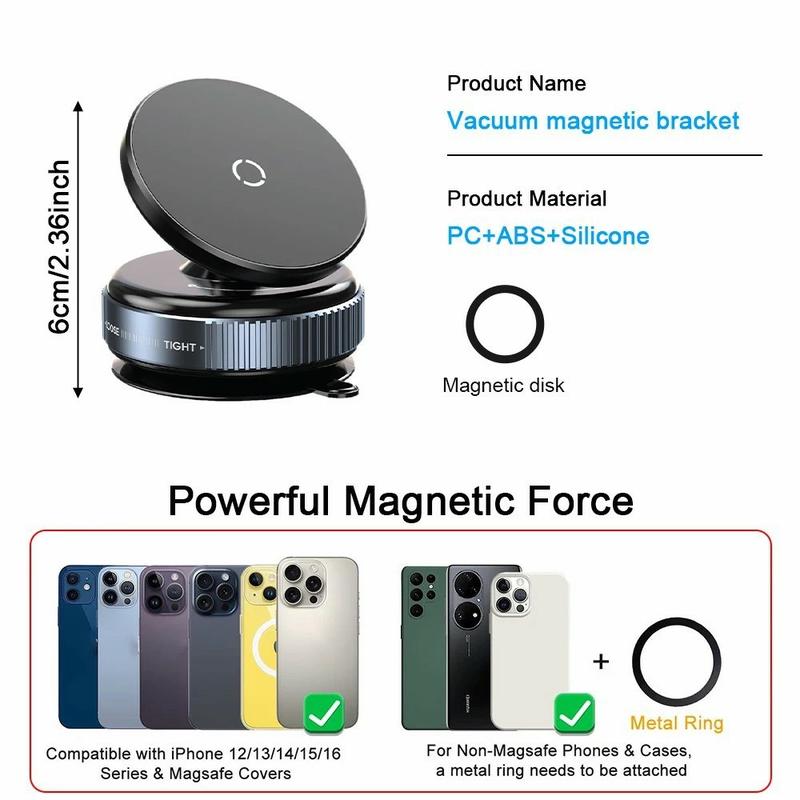 • K009 Kompakte magnetische Auto-Telefonhalterung - 360° drehbare mechanische Vakuum-Saughalterung für Armaturenbrett und Windschutzscheibe