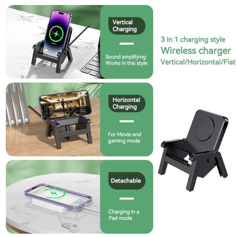 Kabelloser Ladeständer und Sound-Verstärker im Stuhlstil - 15W