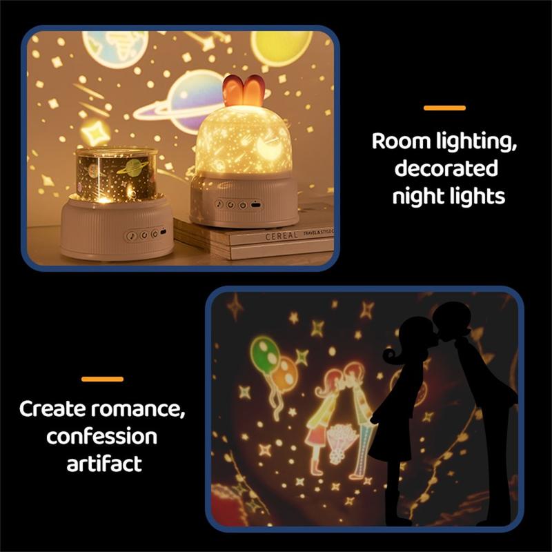 Die Kaninchen-Projektionslampe kombiniert beruhigendes Licht, sanfte Musik und ein lustiges Design und ist damit eine wunderbare Ergänzung für jedes Kinderzimmer. Die Fernbedienungsfunktion und die USB-Stromquelle sorgen für zusätzlichen Komfort, während die CE- und RoHS-Zertifizierungen die Sicherheit für die Familie gewährleisten.
