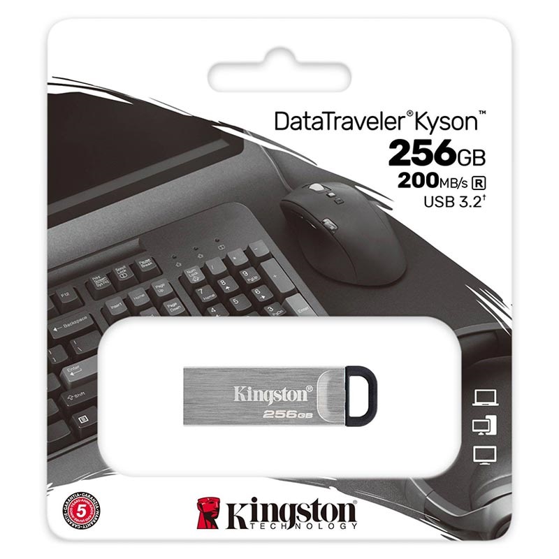 Dieses Modell zeichnet sich durch ein kompaktes und funktionales Design mit einer Schlüsselringschlaufe und einer zeitsparenden USB 3.2 Gen 1-Schnittstelle aus. Der Kingston DataTraveler Kyson funktioniert mit den meisten Betriebssystemen und hält auch extremen Temperaturen stand, so dass Ihre persönlichen oder beruflichen Daten bestens geschützt sind.