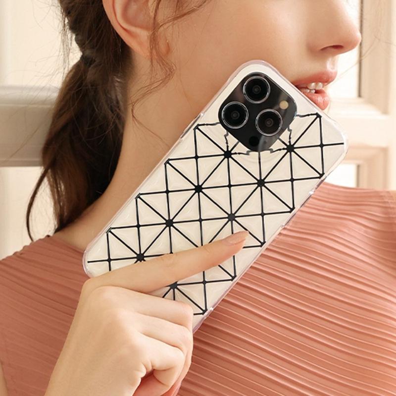 • KINGXBAR Miya Series for iPhone 14 Pro Max 3D Rhombus Pattern Phone Case IMD TPU + PET Reinforced Corners Anti-Scratch Cover