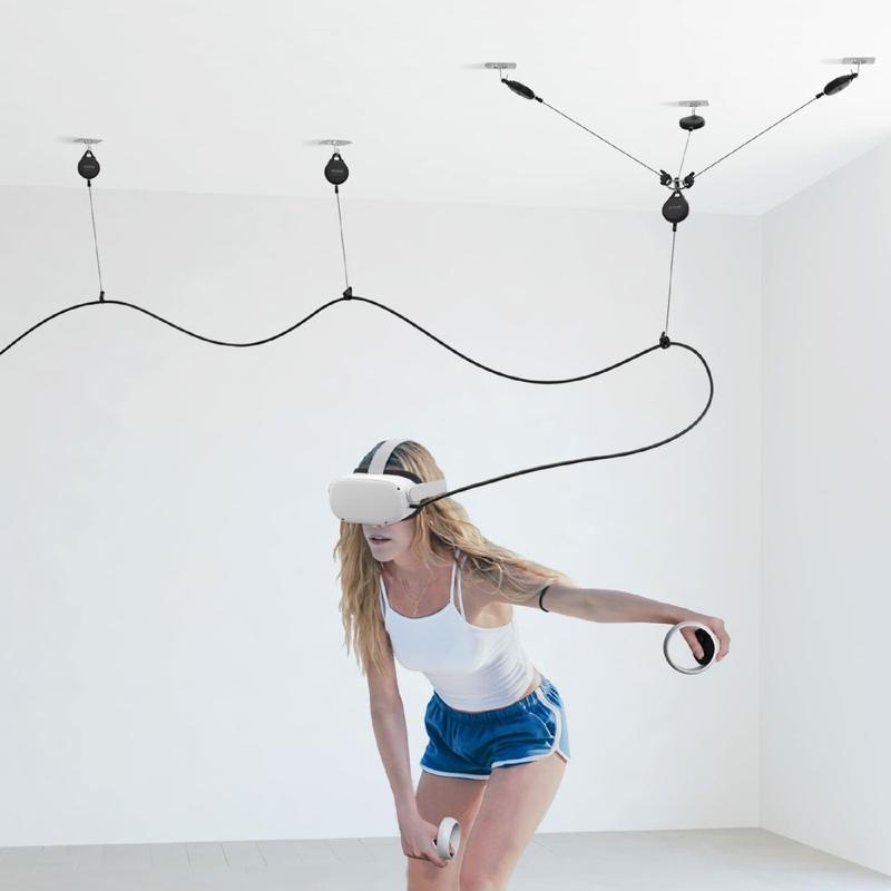 - Das Management von Kabeln über Kopf kann die Lebensdauer von teuren VR-Kabeln und Steckern erheblich verlängern.