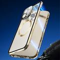 Kompatibel mit MagSafe Case für iPhone 15 Pro Magnetischer Metallrahmen + doppelseitige Telefonabdeckung aus gehärtetem Glas mit Schnallenverschluss - Rot