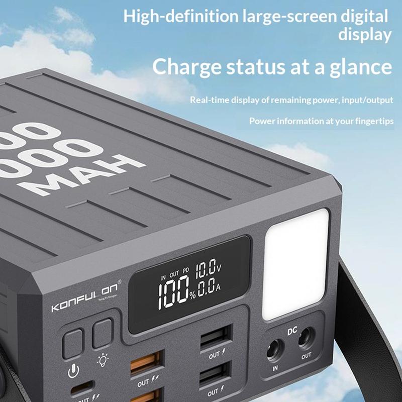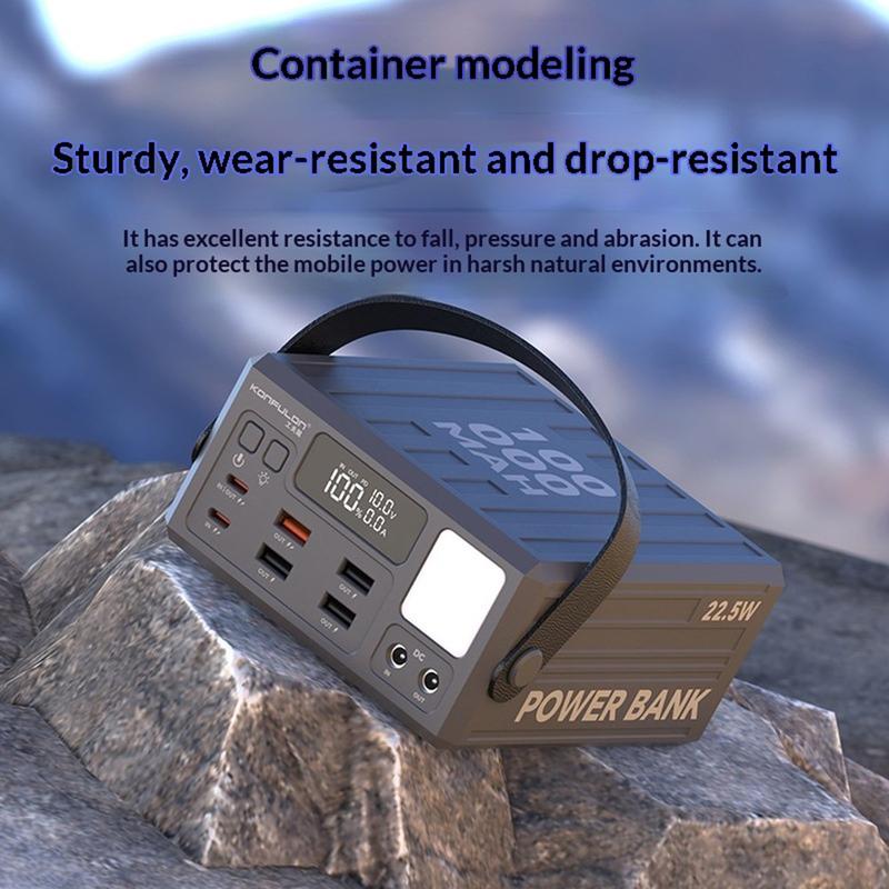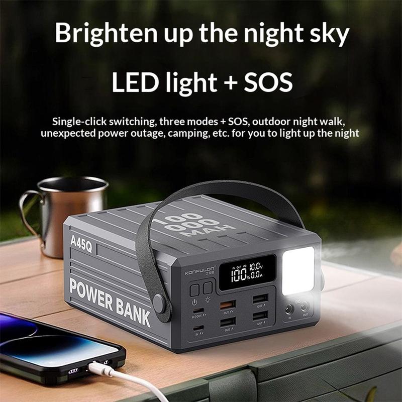 Versorgen Sie mehr Geräte länger mit Strom - mit der Konfulon A45Q Powerbank mit 100000mAh. Diese Ladestation mit hoher Kapazität wurde für Reisen, den Einsatz im Freien, Camping und als Notstromversorgung zu Hause entwickelt und bietet zuverlässige Energiespeicherung mit 7 Ausgangsanschlüssen für das bequeme Laden mehrerer Geräte gleichzeitig.