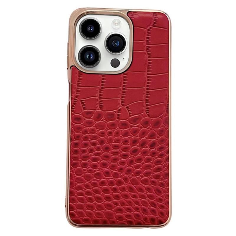 Krokodil Serie iPhone 14 Pro Leder Beschichtet Hülle - Rot