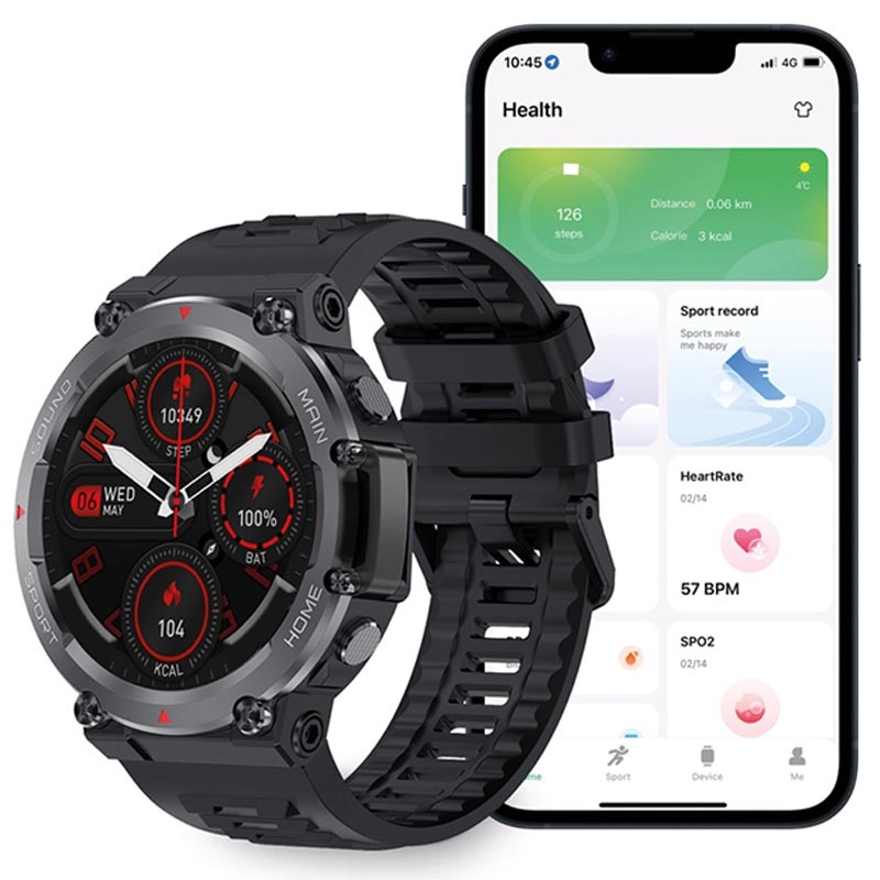 Die Ksix Oslo Smartwatch ist der perfekte Begleiter für alle, die Abenteuer lieben und ein tragbares Gerät suchen, das mit ihrem aktiven Lebensstil Schritt halten kann. Es bietet mehrere Sportmodi, um Ihr Training genau zu messen, sowie Gesundheitsfunktionen wie Herzfrequenzüberwachung, Blutsauerstoffkontrolle, Schlafverfolgung und Atemübungen. Das Ksix Oslo ermöglicht es Ihnen auch, Anrufe direkt von der Uhr aus zu tätigen und entgegenzunehmen und ist mit Sprachassistenten kompatibel.