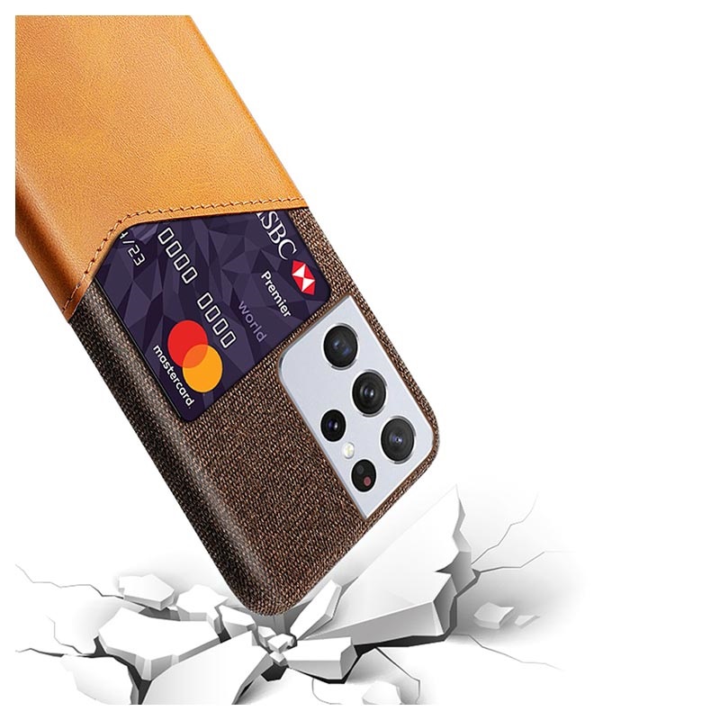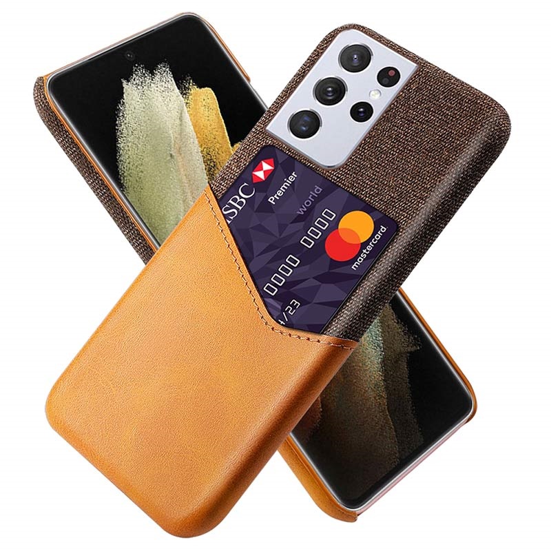 Die strapazierfähige Polycarbonat-Hülle ist mit einem modischen Stoff beschichtet, der das schlanke und elegante Design ergänzt. Eine weiche Polyurethanschicht bildet eine diskrete Kartentasche, die diese Tasche praktischer macht. Diese strapazierfähige, stoßfeste Hülle passt wie ein Handschuh zu Ihrem Samsung Galaxy S21 Ultra 5G, während die Funktionalität intakt bleibt.