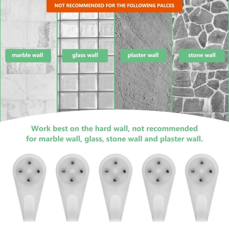 - Langlebiges PP-Material: Hergestellt aus hochwertigem Polypropylen, bieten diese Haken Stärke und Langlebigkeit, in der Lage, verschiedene an der Wand montierte Gegenstände zu unterstützen.