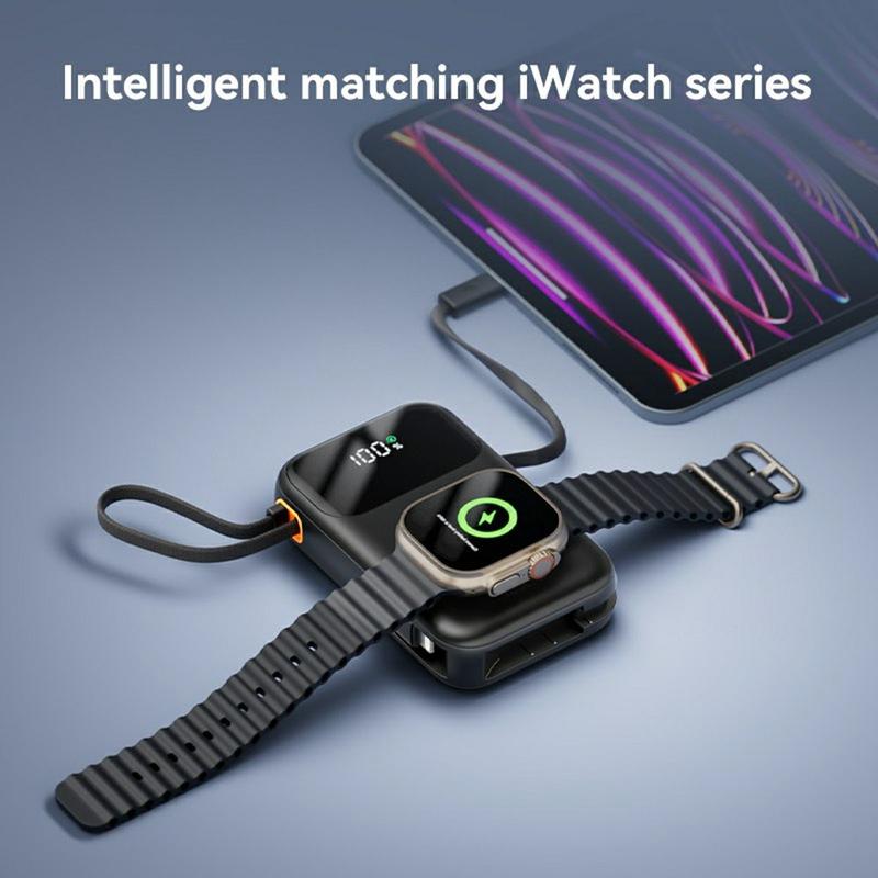 - Zwei integrierte Schnellladekabel: Integrierte iP- und Typ-C-Kabel machen zusätzliche Kabel überflüssig und gewährleisten die Kompatibilität mit einer Vielzahl von Geräten.