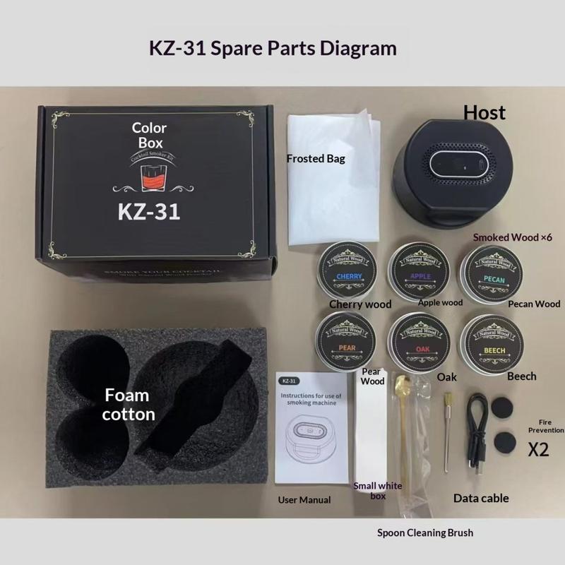 Der KZ-31 bietet eine einfache Möglichkeit, erstklassige Räuchergetränke mit gleichbleibenden Ergebnissen und einfacher Bedienung herzustellen. Mit mehreren Holzspan-Aromen, einem wiederaufladbaren Design und einem kompletten Zubehörset ist er eine ausgezeichnete Wahl für jeden, der ein professionelles Cocktail-Erlebnis zu Hause haben möchte.