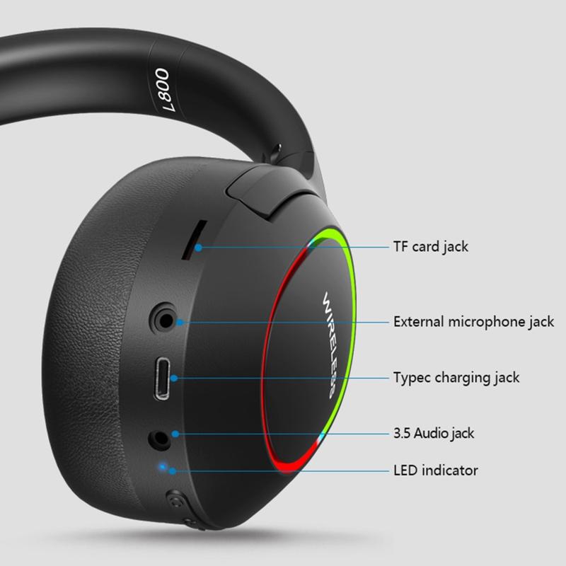 • L800 Wireless Headset Musik Gaming Headset Klappbarer Bluetooth-Kopfhörer mit LED-Leuchten / Mikrofon - Schwarz