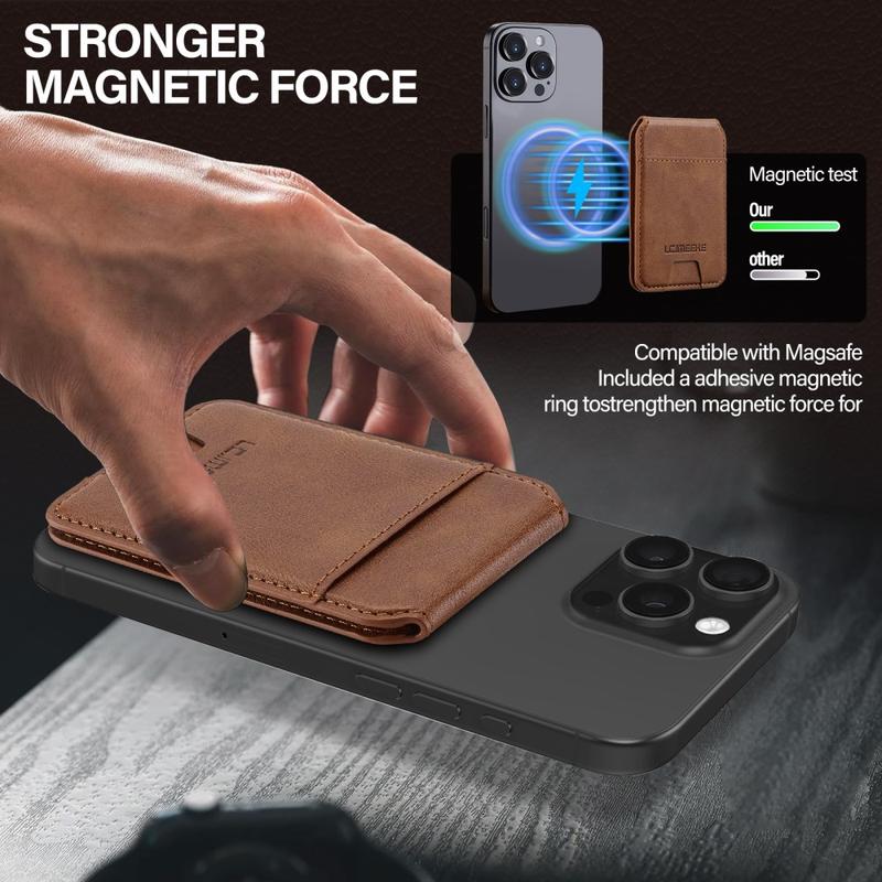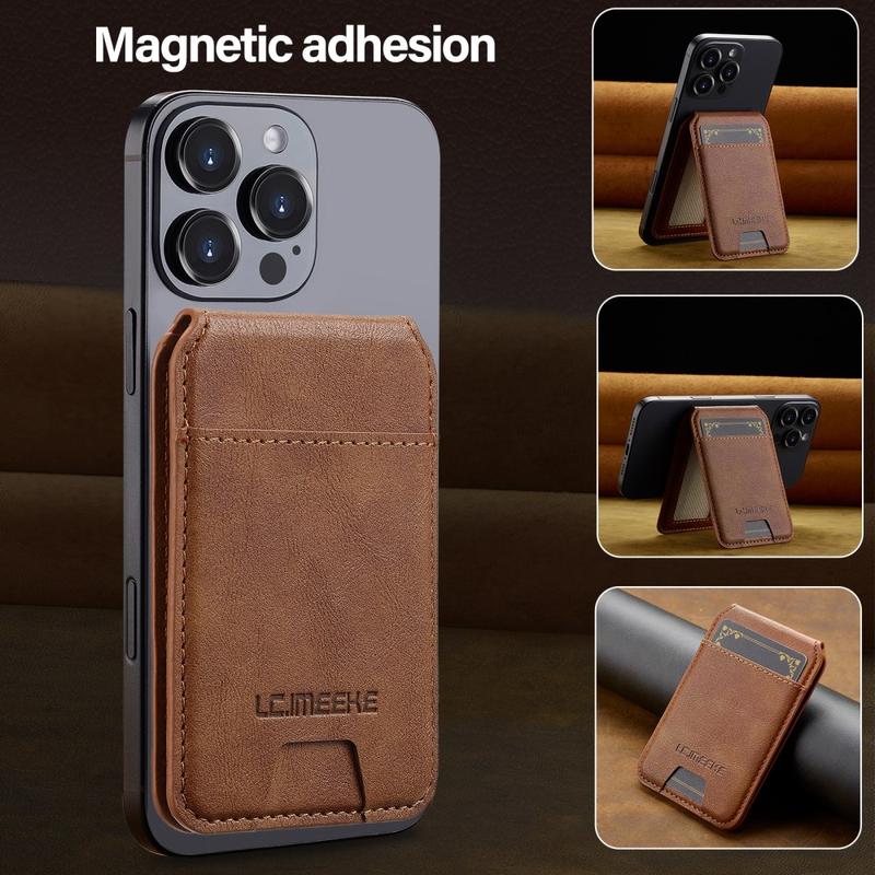 Der magnetische Kartenhalter von LC.IMEEKE ist ein schlankes und elegantes Handy-Accessoire, das die sichere Aufbewahrung von Karten mit dem Komfort des Alltags verbindet. Es wird magnetisch an kompatiblen Mobiltelefonen befestigt und hält Ihre wichtigen Karten in der Nähe, während es ein leichtes Profil beibehält. Mit einem verstellbaren Ständer für freihändiges Betrachten und integriertem RFID-Schutz ist dieses Portemonnaie ideal für den täglichen Gebrauch - egal ob Sie pendeln, reisen oder zu Hause entspannen.