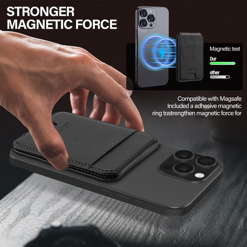 Der magnetische Kartenhalter von LC.IMEEKE ist ein schlankes und elegantes Handy-Accessoire, das die sichere Aufbewahrung von Karten mit dem Komfort des Alltags verbindet. Es wird magnetisch an kompatiblen Mobiltelefonen befestigt und hält Ihre wichtigen Karten in der Nähe, während es ein leichtes Profil beibehält. Mit einem verstellbaren Ständer für freihändiges Betrachten und integriertem RFID-Schutz ist dieses Portemonnaie ideal für den täglichen Gebrauch - egal ob Sie pendeln, reisen oder zu Hause entspannen.